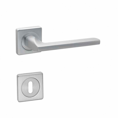 2 kép Bussare Roxane Lapított Négyzetrozettás Ajtokilincs Szatén Króm Felület Csak Kilincs Felső Rozetta (702)