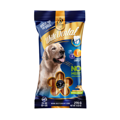 A Buster Dental Vitamin Komplex finom jutalomfalattal elősegíthetjük a kutyusok friss leheletét,továbbá kielégíti a kutyusok rágási ösztönét is.
