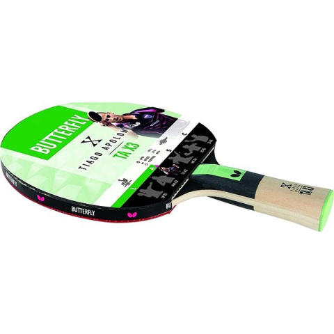 Pingpongütő - négycsillagos, anatómiai (AN) fogantyú, tömege 200 g A Butterfly Tiago Apolonia TAX3 egy tökéletes pingpong ütő olyan haladó játékosoknak, akik az offenzív stílust részesítik előnyben. A modell ötrétegű fából készült, konkáv markolattal. Az 1,5 millimét