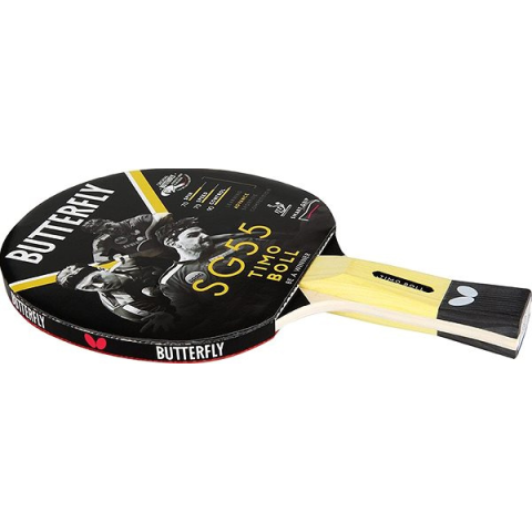 Pingpongütő - négycsillagos, anatómiai (AN) fogantyú, tömege 150 g A Butterfly Timo Boll SG55pingpongütő haladó szabadidős játékosok számára alkalmas. Kiváló minőségű Panasia borítással van ellátva, amely 1,5 mm vastagságú. A Smart Grip technológiával készült anatómi
