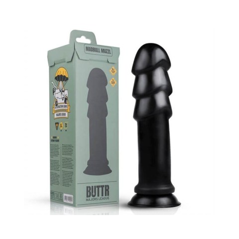 BUTTR Madbull Muzzl - tapadókorongos dildó (fekete) Tulajdonságok: -nagy méret -haladó felhasználóknak -ruganyos, kicsit tapadós, jó tartású anyag -anális és vaginális örömszerzéshez is tökéletes -lekerekített, lépcsős forma -haladó: anális és vagináli