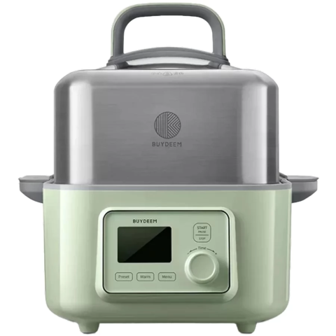 Multifunkciós főzőedény - választható funkciók gőzölés, klasszikus főzés és joghurtkészítés, űrtartalma 5 l, a felszerelés része kijelző, túlmelegedés elleni védelem, automatikus programok, időzítő, automatikus kikapcsolás és hőmérséklet szabályozás, rozsdamentes acél belső felület, 1500 W teljesítmény, mérete 29,5 × 28,5 × 33,5 cm (Ma×Sz×H), tömege 6,9 kg, inox és zöld kivitel A Buydeem G564 multifunkciós edény felér egy fél konyhávalA Buydeem