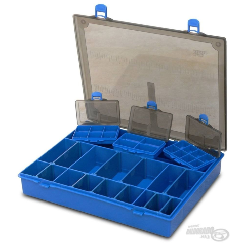 A By Döme termékpaletta újabb kiváló minőségű kiegészítőkkel bővült, melynek egyik darabja ez az Komplett szerelékes doboz. Mivel a gyors és hatékony horgászat egyik fontos feltétele a rend és a precizitás, így rengeteg idő spórolható meg azzal, ha a horgász pontosan tudja, mit hol talál a dobozában. Ebben a dobozban a horgok, forgók, kapcsok és egyéb aprócikkek szortírozását 3 darab, különböző osztásban gyártott doboz (10,5 x 6,5 x 2,3 cm) segíti. A d