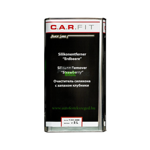 C.A.R. Fit Eper illatú Szilikon lemosó (5L) Eperillatú, szerves oldószer-alapú tisztítószer, amely eltávolítja a kátrányt, szilikont, olajat, zsírt és egyéb szennyeződéseket a különféle fém- és műanyagfelületekről, valamint poliészter gittekről és régi va