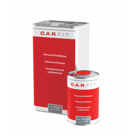Sokoldalú hígító, amely a C.A.R.FIT különféle felületkezelő anyagainak – alapozók, töltőanyagok, fedőlakkok – hígítására használható. A C.A.R.FIT Universal Thinner segít a különböző autóipari és haszongépjármű-fényezési termékek (alapozók, töltőanyagok
