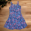 Pillangós ruha Kissé bővülő szabású, kerek nyakkivású, háta cipzáros. Hibátlan állapotú.