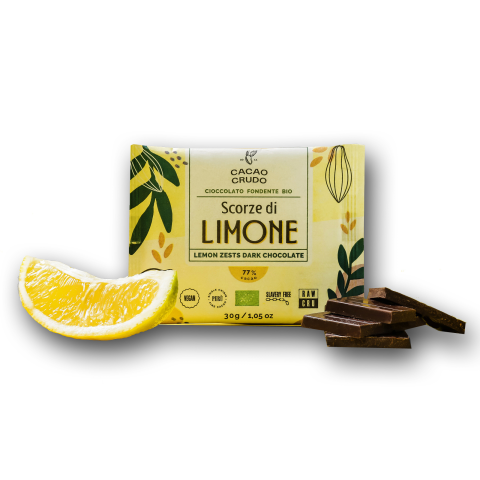 1 kép Cacao Crudo Raw Étcsokoládé citromhéjjal, BIO, 30 g *IT-BIO-006 tanúsítvány