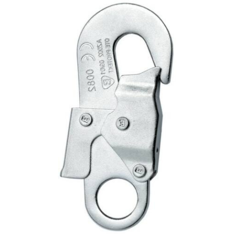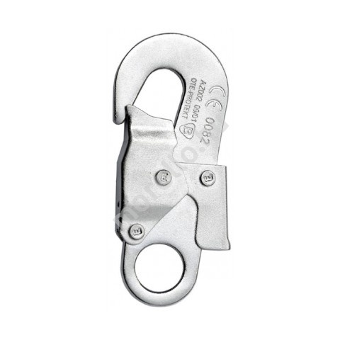 AZ002 Méretek: A-128 mm, B-55 mm, C-18 mmTerhelés: 20 kNSúly: 220 grAnyag: galvanizált acélzáródás: kettő rugós acélzárBiztonsági zárkapcsok: csak két, egymást követő szándékos kézi művelettel nyithatókEU szabvány: EN362 • a zuhanásgátló rendszerek kiala