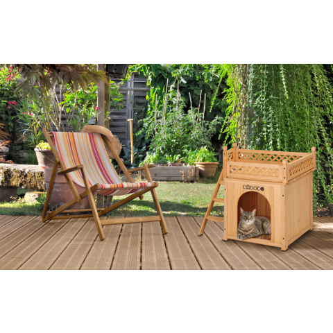 Cadoca macskaház FSC Tanúsítvánnyal rendelkező akácfából 53,5x54,5x64,5cm (100134)