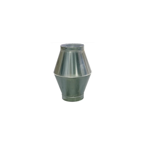 Horganyzott acél betétkúpos kifúvófej függőleges kifúvással, ipari és komfort szellőzéshez, az EN 12237 szabvány szerinti D légzárósági osztályú gumitömítéssel. A légzárósági osztályt az építkezésen történő beépítés is meghatározza. CAIROX típus: DKA