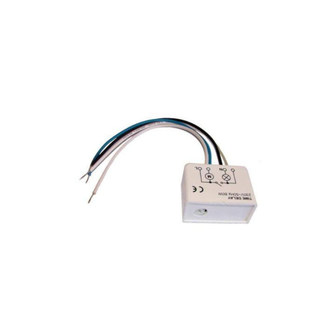 Tokozott időzítő elektronika fix, 1 perces bekapcsolási és kb. 1-16 perc között állítható kikapcsolási késleltetéssel. Szerelhető kötődobozba vagy egyéb szerelvénybe is.