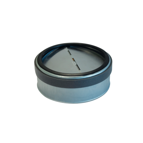Kör keresztmetszetű, légcsatornába csúsztatható visszacsapó szelep acéllamellákkal, tömítő szalaggal. A szelep túlnyomás hatására nyit, majd a nyomás leesése után zár köszönhetően a rozsdamentes acél rugónak.