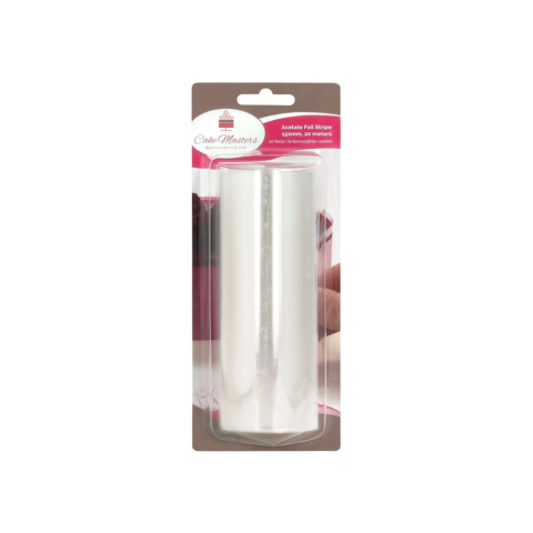 Átlátszó, 15 cm magas és 20 méter hosszú acetát fólia torták, desszertek és mousse-ok rétegezéséhez. Professzionális minőségű, könnyen vágható és higiénikus megoldás. A Cake-Masters acetát fólia elengedhetetlen eszköz a precíz és tiszta torta- vagy des