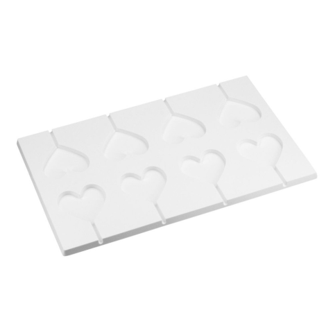 Cake-Masters nyalóka forma, szilikon, szív Ezzel a szilikonból készült rugalmas formával nyolc szív alakú nyalókát készíthet minden anyagból, mint pl. Csokoládé, Cukor, Isomalt és még sok más. Hőálló és fagyálló. Ezért forrásban lévő cukrot is lehet ön