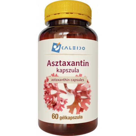 Caleido asztaxantin gélkapszula 60 db 7 mg természetes asztaxantin minden kapszulában. Az asztaxantin egy karotinoid pigment, amely más tengeri élőlények mellett a pisztrángban, mikroalgákban, élesztőben és garnélákban fordul elő. Leginkább a csendes-