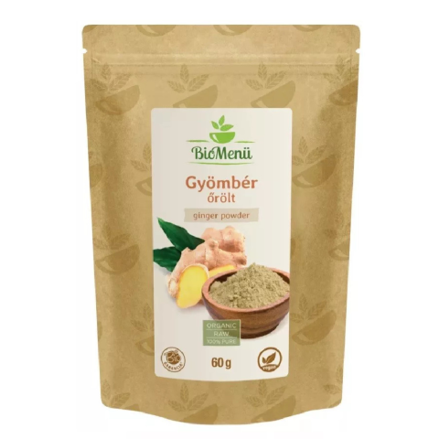 BioMenü BIO Gyömbér őrölt 60g A gyömbér az ázsiai és az indiai konyha népszerű alapanyaga, melyet több ezer éve gyógyászati ?célokra is használnak.Sikeresen alkalmazzák émelygésre, étvágytalanságra, a mozgásszervi betegségek tüneteinek kezelésére és fá