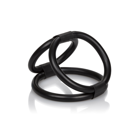 COCK CAGE péniszgyűrű.Az extra szex-élményért és a tartósan merev erekcióért!Három gyűrű egyben!Széles falú, erős gumiból készült hármas gyűrű, melyet a péniszre, illetve a herékre helyezve igazán különleges fogó, szorító érzést ad, így segítve az erekciót. A 2db, heréknek kialakított gyűrű átmérője egyenként 4,5-5cm, a pénisznek kialakított gyűrű átmérője pedig 4cm. Enyhén rugalmas.Anyaga: Latex. Fekete színben.