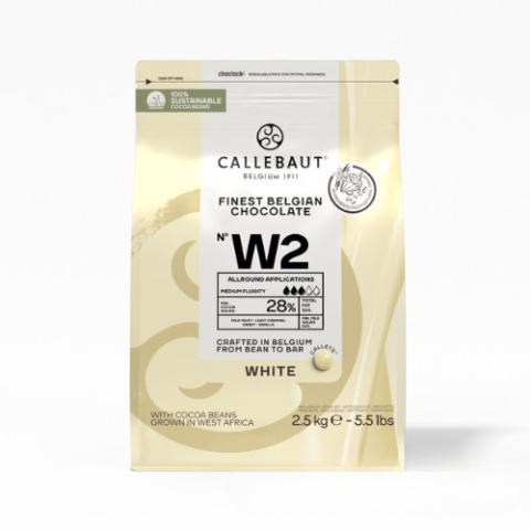 A Callebaut belga fehércsokoládé 28,1%-os kakaótartalommal készül, kiegyensúlyozottan krémes és tejes ízvilágú prémium csokoládé. Selymes textúrája és kiváló feldolgozhatósága miatt ideális bonbonokhoz, tortákhoz, mousse-okhoz és bevonatokhoz. Kiszerelés:
