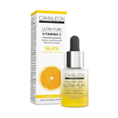 Camaleon Ultra Pure C vitamin koncentrátum 98,6% természetes összetevõkkel. Világosság teszi a bőrt, csökkenti a vörösséget, egységesíti a bőrfelszínt. Csökkenti a ráncokat és a szabadgyököket, öregedésgátló hatású. Ragyogóvá, simábbá varázsolja a bőrö