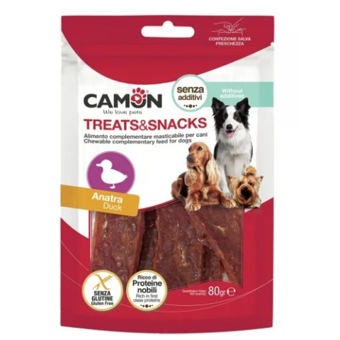 Ízletes kacsás lapok, adalékanyagok nélkül. Gluténmentes, proteinekben gazdag jutalomfalat kutyák számára. Nettó 80 gramm. Összetétel: húsok és származékok (min. 88,5% kacsa), kukoricakeményítő, glicerin, cukrok és ásványok. Használati útmutató: 4 h