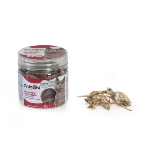 Szárított szardella gluténmentes, proteinban gazdag étrendkiegészítő macskáknak adalékok nélkül (30 gramm). Összetétel: 100% szardella (Engraulis japonicus) szárított. Használati útmutató: 4 hónapnál idősebb macskák számára ajánlott. Ajánlott napi fogy