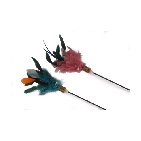 1 kép Camon S.p.A. AG0291 Pálcás tollas cicajáték 65 cm puha markolattal fekete