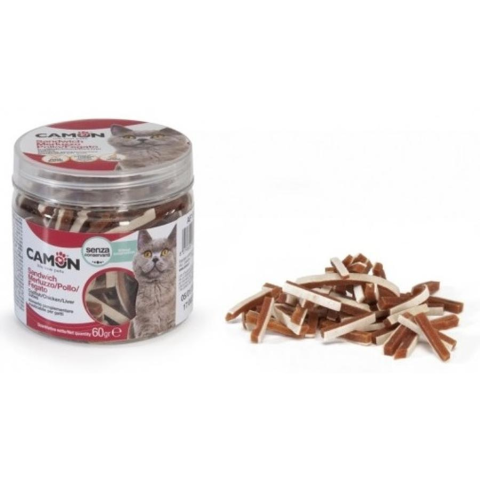 Csirkés, tőkehalas, májas szendvics taurinnal. Gluténmentes, proteinban gazdag étrendkiegészítő macskáknak adalékok nélkül 60 gramm