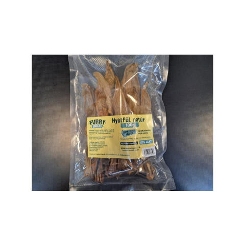 Nyúlfül natúr 100gSzárított jutalomfalat kutyák számára. Természetes eredetű, adalékoktól és ízfokozóktól mentes.Összetétel: szárított nyúlfül. Analitikai összetevők: nyersfehérje 38.8%, nyersrost 1%, nyerszsír 51.7%, nyershamu 2.7%, nedvességtartalom 5.8%.Ajánlott napi mennyiség 1-5 db. kedvence méretétől függően.Mindig biztosítson friss vizet kutyája számára! Hűvös, száraz helyen tárolandó.Származási hely: EUKiszerelés: 100g