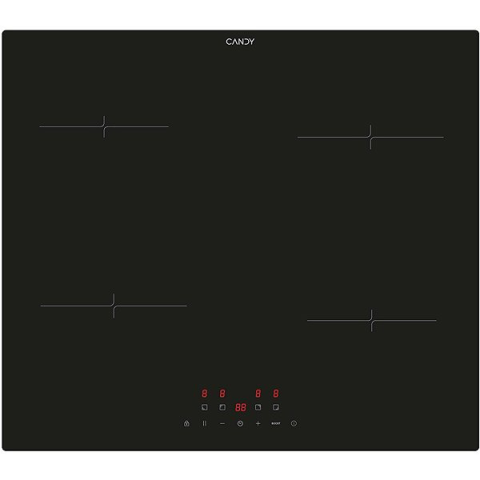 Főzőlap - indukciós, beépíthető, 4 főzőzóna, automatikus edényérzékelés, automatikus kikapcsolás, gyerekzár, maradékhő jelzés, power management és automatikus védelem kifutás esetén, booster, hangjelzés és időzítő, érintéses vezérlés, egyenes élek, keret nélküli, fekete üveg kivitel, üveg felület, 230 V és 400 V csatlakozás, mérete 59 × 52 × 6,2 cm (Sz×Mé×Ma), a készülék csatlakoztatásához villanyszerelő szükséges A tartós CANDY elektromos in