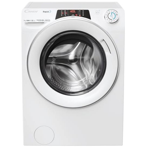 Keskeny mosógép - elöltöltős, A energiaosztály, 7 kg töltetkapacitás, súlyozott energiafogyasztása 38 kWh/100 ciklus, súlyozott vízfogyasztása 41 l /1 ciklus, gőzprogram, inverter motor, késleltetett indítás, gyorsprogram, mobilos vezérlés és gyerekzár, centrifugálási fordulatszáma 1151 ford/perc, mérete 60 × 85 × 45 cm (Sz×Ma×Mé) CANDY RO4 274DWMS7/1-S RapidÓ keskeny elöl töltős mosógép A Candy RO4 274DWMS7/1-S RapidÓ elöltöltős mosógép ideális eszköz
