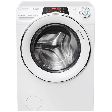 Keskeny mosógép - elöltöltős, A energiaosztály, 7 kg töltetkapacitás, súlyozott energiafogyasztása 38 kWh/100 ciklus, súlyozott vízfogyasztása 41 l /1 ciklus, inverter motor, késleltetett indítás, gyorsprogram, mobilos vezérlés és gyerekzár, centrifugálási fordulatszáma 1351 ford/perc, mérete 60 × 85 × 45 cm (Sz×Ma×Mé) CANDY RO4 476DWMC7/1-S RapidÓ keskeny elöltöltős mosógépA CANDY RO4 476DWMC7/1-S RapidÓ elöltöltős mosógép ideális eszköz az idő- és p