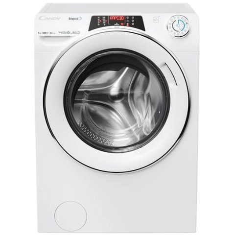 Mosógép - elöltöltős, A energiaosztály, 8 kg töltetkapacitás, súlyozott energiafogyasztása 40 kWh/100 ciklus, súlyozott vízfogyasztása 44 l /1 ciklus, inverter motor, késleltetett indítás, gyorsprogram, mobilos vezérlés és gyerekzár, centrifugálási fordulatszáma 1351 ford/perc, mérete 60 × 85 × 53 cm (Sz×Ma×Mé) A CANDY RO 486DWMC7/1-S RapidÓ elöltöltős mosógépA CANDY RO 486DWMC7/1-S RapidÓ elöltöltős mosógép ideális eszköz az idő- és pénzmegtakarít