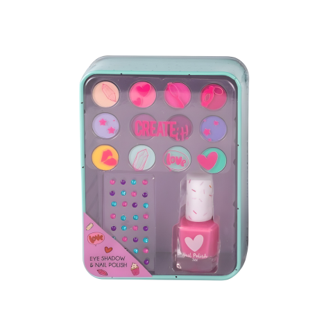 Fedezd fel a Create It! Szemhéjfesték és körömdíszítő szettet, mely egy praktikus tárolóban érkezik, hogy mindig kéznél legyenek a kreatív alkotásokhoz szükséges eszközök! Ez a szett minden kis divatmániás és kreatív lelkű gyerek számára tökéletes választás, hogy kibontakoztathassa kreativitását és stílusát.