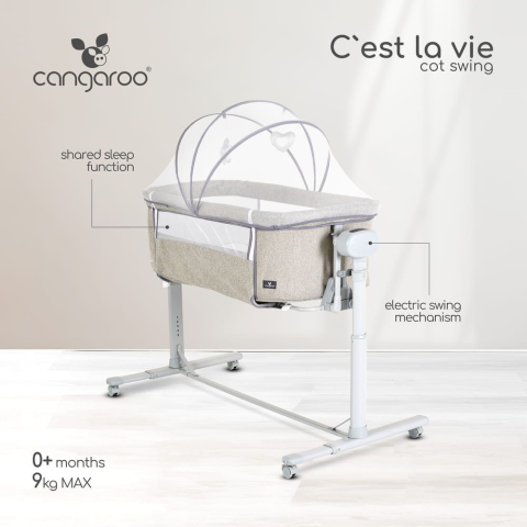 Cest La Vie Babaöböl Távirányítóval, Ringató Funkcióval Vszürke MBN-111853. C'EST LA VIE babaöböl távirányítóval vszürke - Cangaroo többfunkciós babaágyat úgy tervezték, hogy az első naptól kezdve maximális kényelmet és biztonságot nyújtson. Születéstől 9 kg-ig alkalmas csecsemők számára.Háromféleképpen használható.- Együtt alvó ágy bababölcső a szülői ágy mellett - a szülői ágyhoz könnyen csatlakoztatha