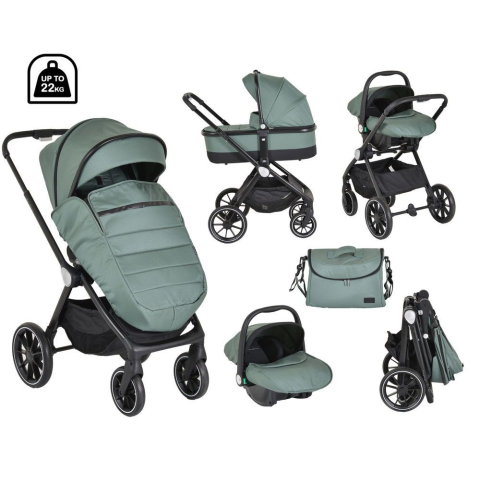 Christiano Babakocsi Szett 3in1 Lapra Csukható, Alu Váz, 22kgig Zöld MBN-110922. CHRISTIANO babakocsi szett 3in1 lapra csukható, alu váz, 22kgig ZÖLD, A Christiano 3 az 1-ben babakocsi – A szépséget szerető szülők számára készült, és alkalmas újszülöttek és maximum 22 kg-os gyermekek számára. A könnyű alváz és a gazdag felszereltség teszi teljessé az egyedi dizájnt. Jellemzők:• A babakocsi ülése alkalmas újszülöttek