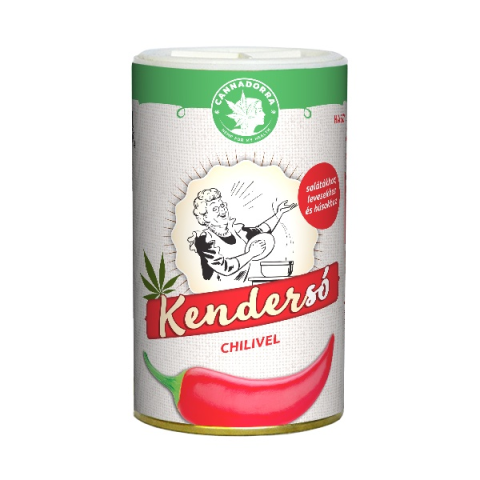 Himalája só, kendervirággal és levelekkel és chilivel.