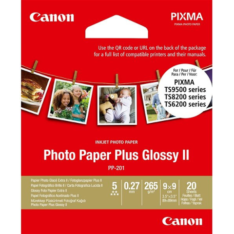Fotópapír - 20 lap, formátum: 9 × 9 cm, tintasugaras nyomtatóhoz, fényes, anyagsűrűség: 265 g/m2 A kitűnő Canon Photo Paper Plus PP-201 főbb előnyei A modern Canon fotópapír a rögzített emlékeket fizikai formába önti A kinyomtatott fényképek megőrzik a kiváló élességet Alkalmas: tintasugaras nyom