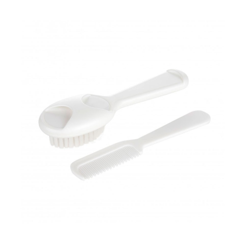 A hajkefe a fésűvel tökéletes szett az első hajacskék fésülésére és a kisgyermekek fejének masszírozására. A fésű fogai gombölyűek, ezért nem irritálják a baba érzékeny bőrét, míg a szintetikus sörték a kefén garantálják a biztonságos és kényelmes ápolást