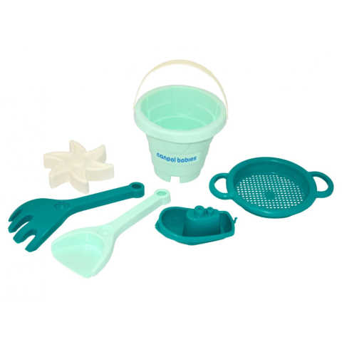 Tökéletes választás homokban és vízben való játékhoz. A készlet 6 elemet tartalmaz: egy lapát, egy gereblye, 1 forma, egy csónak, egy szita és egy vödör vártorony formájú. A készlettel ellátott játékok fejlesztik a gyerekek képzeletét és kreatív gondolkod