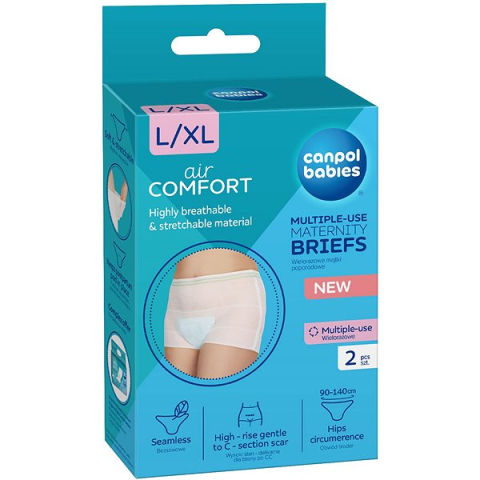 Eldobható bugyi kismamáknak - mérete L/XL , anyaga légáteresztő nejlon, elasztikus, többször használatos Szülés után nagyon fontos a kényelem és a megfelelő higiénia. Az L/XL-es méretű Canpol Babies multifunkciós bugyi lélegző nejlonból készült, hogy a lehető legjobb légáramlást és kényelmet biztosí