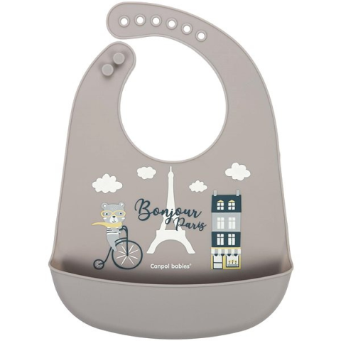 1 kép Canpol Babies szilikon előke zsebbel, Bonjour Paris, bézs színben