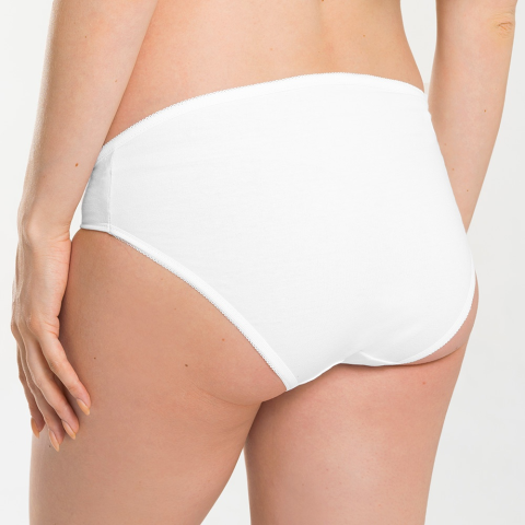 Ez az alacsony kismama fehérnemű gyengéd pamut szövetből készült, amely nem irritálja a bőrt. A kényelmes alakjának köszönhetően kellemes a viselése, nem szorít és segít megbírkózni a terhesség kényelmetlenségeivel. Fehér színben elérhető, három méretben: