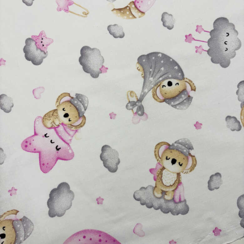 100% pamutvászon textil méteráru. 160 cm széles. Legkisebb rendelési mennyiség 1 m. 160 cm extra széles, pamutvászon textil méteráru. Összetétel: 100% pamut. Finom, puha, ágyneműhuzatnak való pamutvászon anyag. Cuki, alvó koalamacik, csillagba, holdb