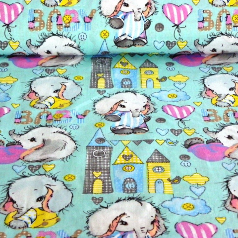 1 kép Canvas BABY FÁNI, extra széles, elefántbébi mintás pamutvászon, menta
