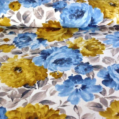 1 kép Canvas BAZSARÓZSA, nagy virágos pamut lakástextil, dekorvászon, kék