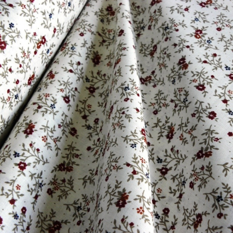 1 kép Canvas BERTA, apró bordó virágos, leveles mintás pamut vászon