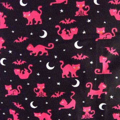 1 kép Canvas BOSZICICA, cicás, denevéres fekete-pink pamutvászon
