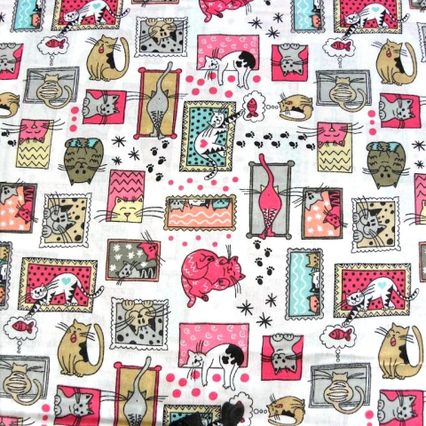1 kép Canvas Cicák mintás pamutvászon - pink