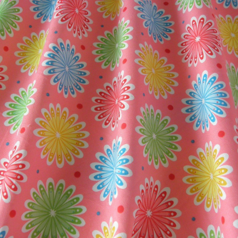 1 kép Canvas DAISY, pamut puplin méteráru, korall rózsaszín virágmintás