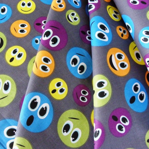 1 kép Canvas EMOJI, smiley mintás pamutvászon - szürke